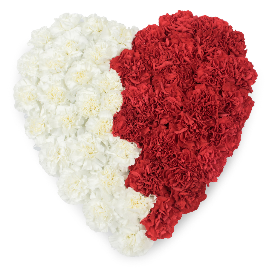 Illuminate your sentiments with our radiant heart-shaped mixed carnations bouquet, featuring a vibrant mix of white and red carnations. Each flower is hand-selected to ensure exceptional freshness and quality, making this arrangement a perfect gift for expressing love and sympathy.